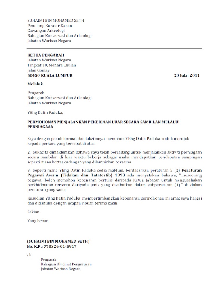 Surat Rasmi Permohonan Lesen Perniagaan Letter 7saudara Com